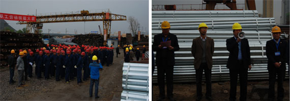 為落實集團(tuán)總公司《2014年安全生產(chǎn)工作要點(diǎn)》,豐富物產(chǎn)配送公司基層班組建設(shè),促進(jìn)一線職工綜合技能水平提升,以《吊裝作業(yè)規(guī)范手勢》為標(biāo)準(zhǔn),檢驗公司一線司吊作業(yè)人員執(zhí)行國家規(guī)范手勢、司吊作業(yè)操作規(guī)程的實際效果,保證全年安全控制目標(biāo)的實現(xiàn)。物產(chǎn)配送公司在前期宣傳動員、學(xué)習(xí)培訓(xùn)、實戰(zhàn)演練的基礎(chǔ)上,于2014年5月17日上午,舉行職工勞動技能比武大賽。集團(tuán)總公司黨委書記白家林、集團(tuán)黨群工作部部長趙宗青、安全環(huán)保部干事劉軍蒞臨現(xiàn)場指導(dǎo)。