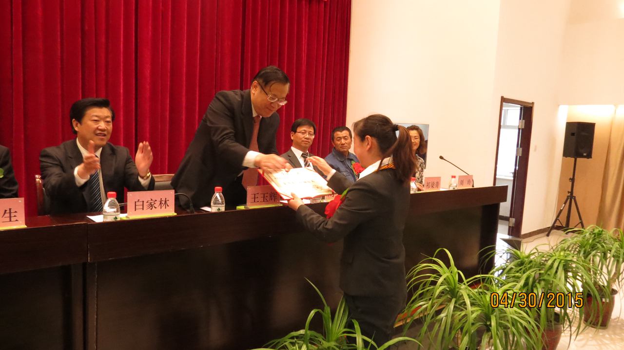 集團總經(jīng)理王玉輝首先為榮獲"全國五一巾幗標兵"榮譽稱號的青海物產(chǎn)汽車貿(mào)易有限公司銷售總監(jiān)劉少俠頒發(fā)了榮譽證書。
