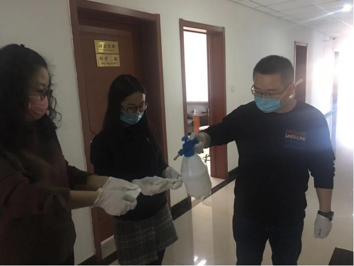 守護職工筑牢"安全防線":物產(chǎn)配送公司黨委通過配發(fā)酒精40公斤、84消毒液6瓶、消毒濕巾等防控器具,及時組織黨員指導(dǎo)職工進行防控工作,重點對宿舍、辦公室、值班室、洗手間門把手、辦公桌椅等進行噴灑消毒。