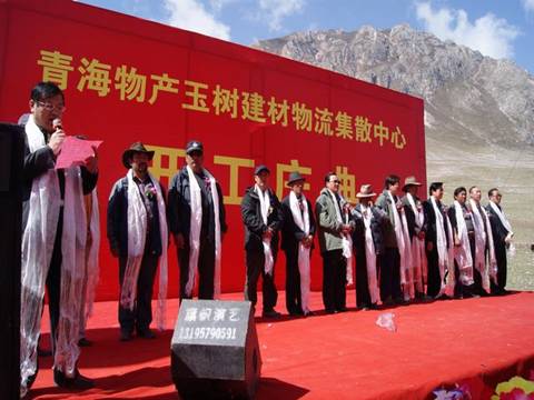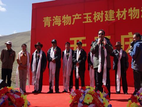 省玉樹地震災(zāi)后重建現(xiàn)場指揮部指揮長、副省長馬順清宣布建材物流集散中心正式開工并講話。省政府副秘書長巨偉、省經(jīng)委、省城鄉(xiāng)住房建設(shè)廳、西寧市政府、玉樹州政府相關(guān)部門、玉樹縣有關(guān)負(fù)責(zé)同志,省物產(chǎn)集團(tuán)總經(jīng)理王玉輝、黨委書記白家林、副總經(jīng)理物產(chǎn)化工公司董事長耿保平等參加了開工儀式。