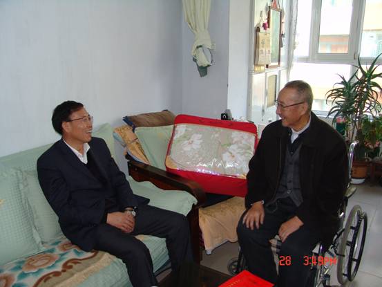 2013年1月28日,春節(jié)來臨之際,省委組織部王志明副部長在省國資委黨委副書記毛占彪、物產(chǎn)集團(tuán)領(lǐng)導(dǎo)白家林、王仁芬的陪同下,走訪慰問了集團(tuán)系統(tǒng)生活困難老黨員肖振東。王志明副部長親切地詢問肖振東的身體狀況、生活和家庭情況,發(fā)放了慰問金和慰問品,并希望他保重身體,愉快安度晚年。老黨員肖振東激動(dòng)地表示感謝黨組織的關(guān)懷,感謝上級領(lǐng)導(dǎo)的關(guān)心!